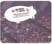 This Champion blimp was used during the CASCAR Race at Delaware Speedway. It was not only used for advertising but was fitted with a camera to take video of the race. |